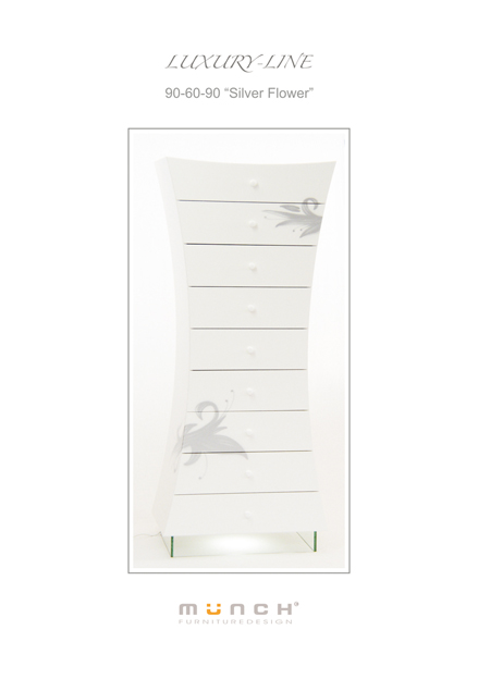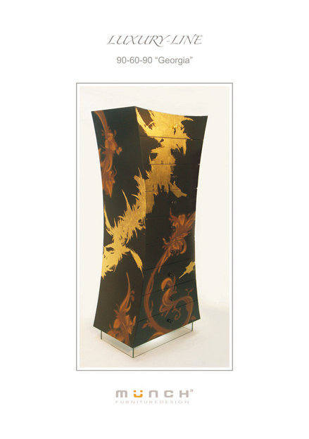 In 15 mm multiplex with surface finishing i.e. 24 carat 3 fold strong gold leaf, precious wood or as socket in 10 mm VSG/ESG glass with LED lighting. |